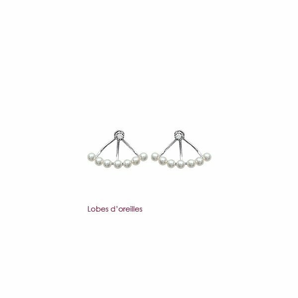 Boucles d'oreilles en argent rhodié, oxydes de zirconium et perle d'imitation Description détaillée