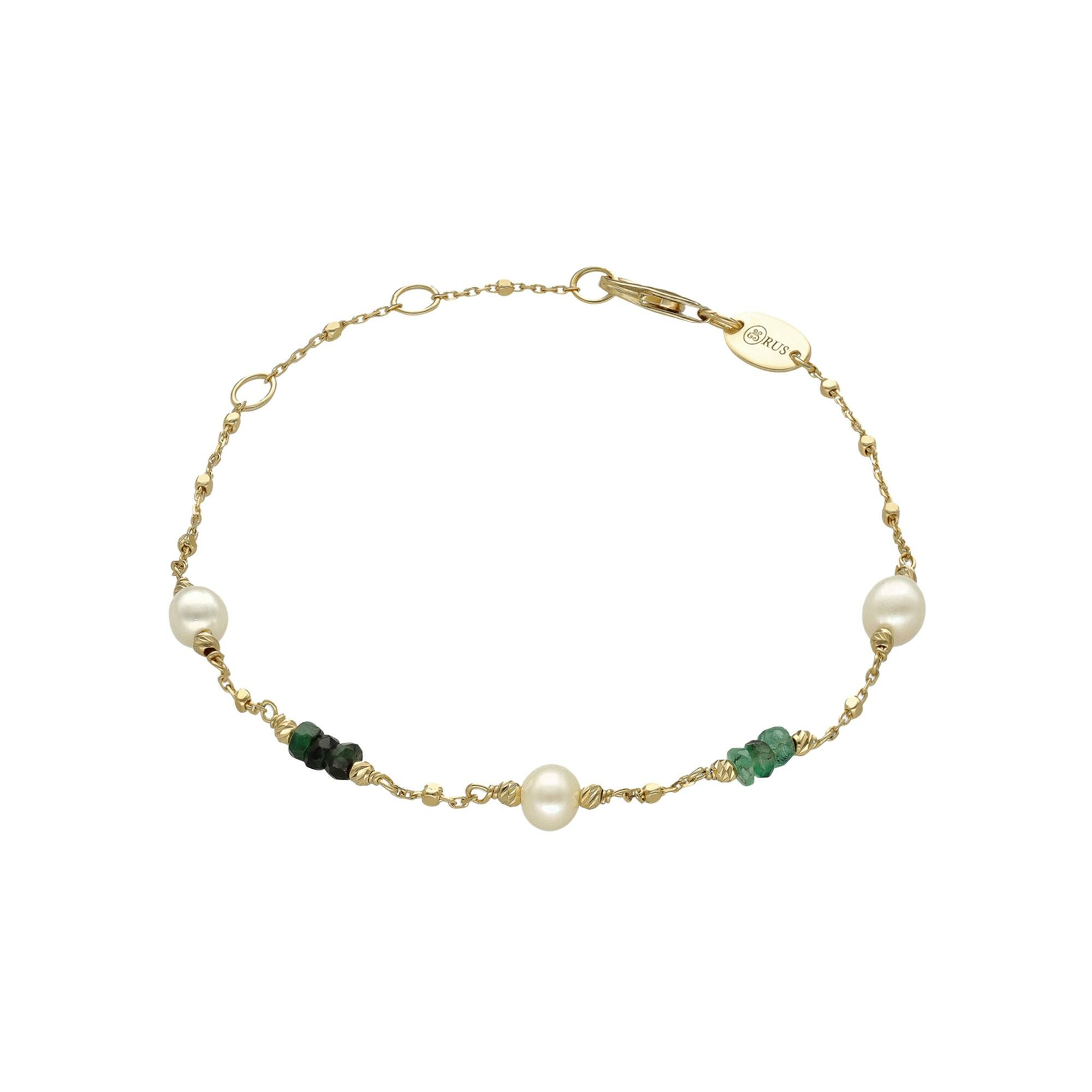 Perles Naturelles Bracelet Orus Bijoux en argent doré, perle d'eau douce et émeraude Description détaillée