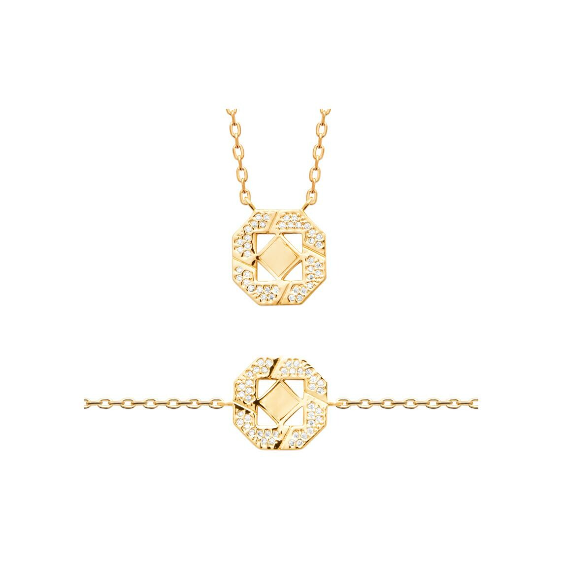 Collier en plaqué or et oxyde de zirconium, 45 cm Description détaillée