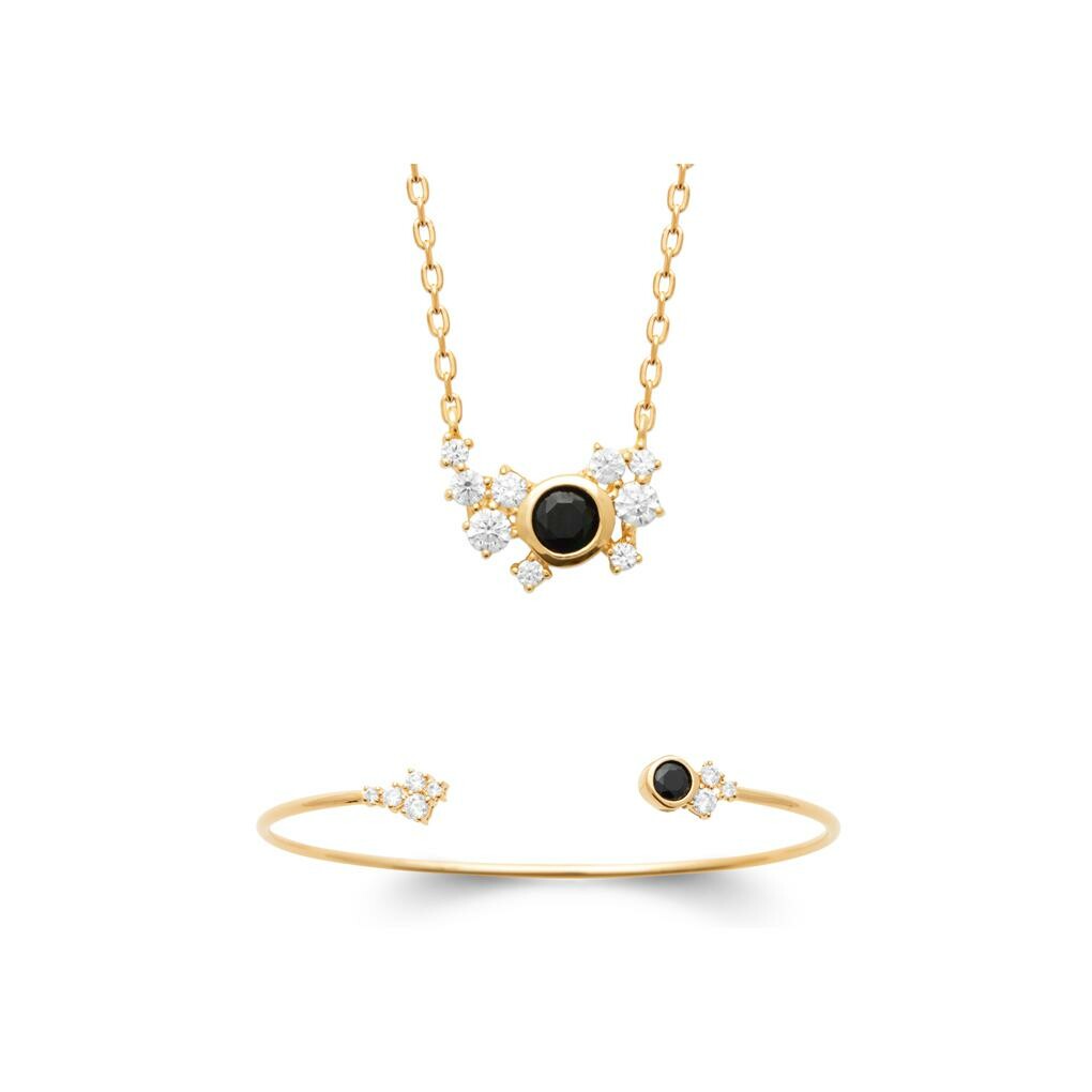 Collier en plaqué or, oxyde de zirconium et pierres de couleurs, 45 cm Description détaillée